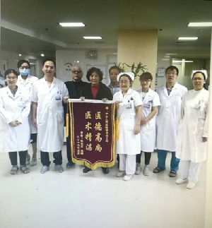 近日,在神經(jīng)內(nèi)三科康復出院的倪阿姨,攜老伴將一面繡有“醫(yī)德高尚,醫(yī)術(shù)精堪”的錦旗,送給了科內(nèi)全體醫(yī)務人員。 倪阿姨因“左側(cè)面部及肢體麻