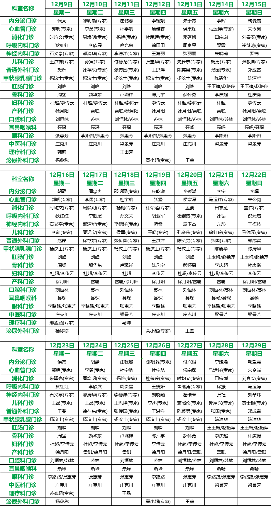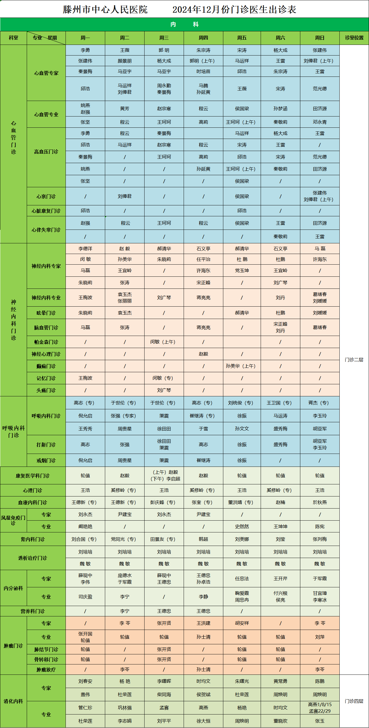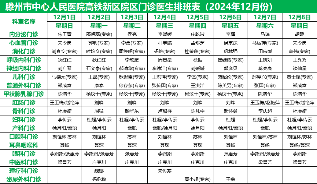 關(guān)注 | 滕州市中心人民醫(yī)院12月份專家、專業(yè)門診排班表