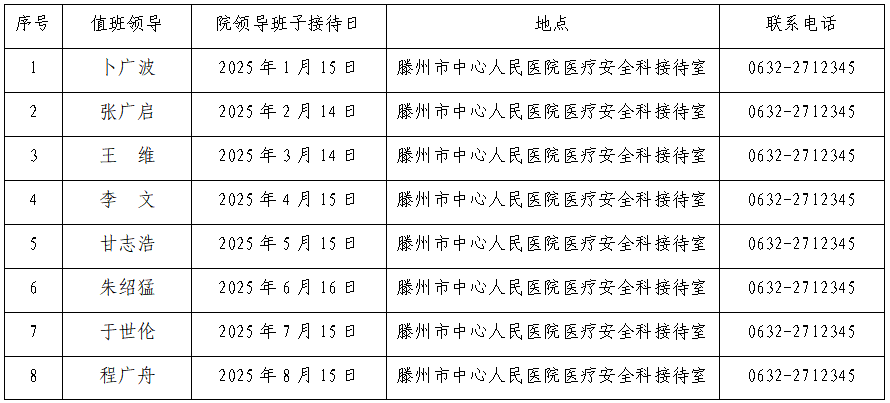 滕州市中心人民醫(yī)院院領(lǐng)導(dǎo)班子接待日一覽表