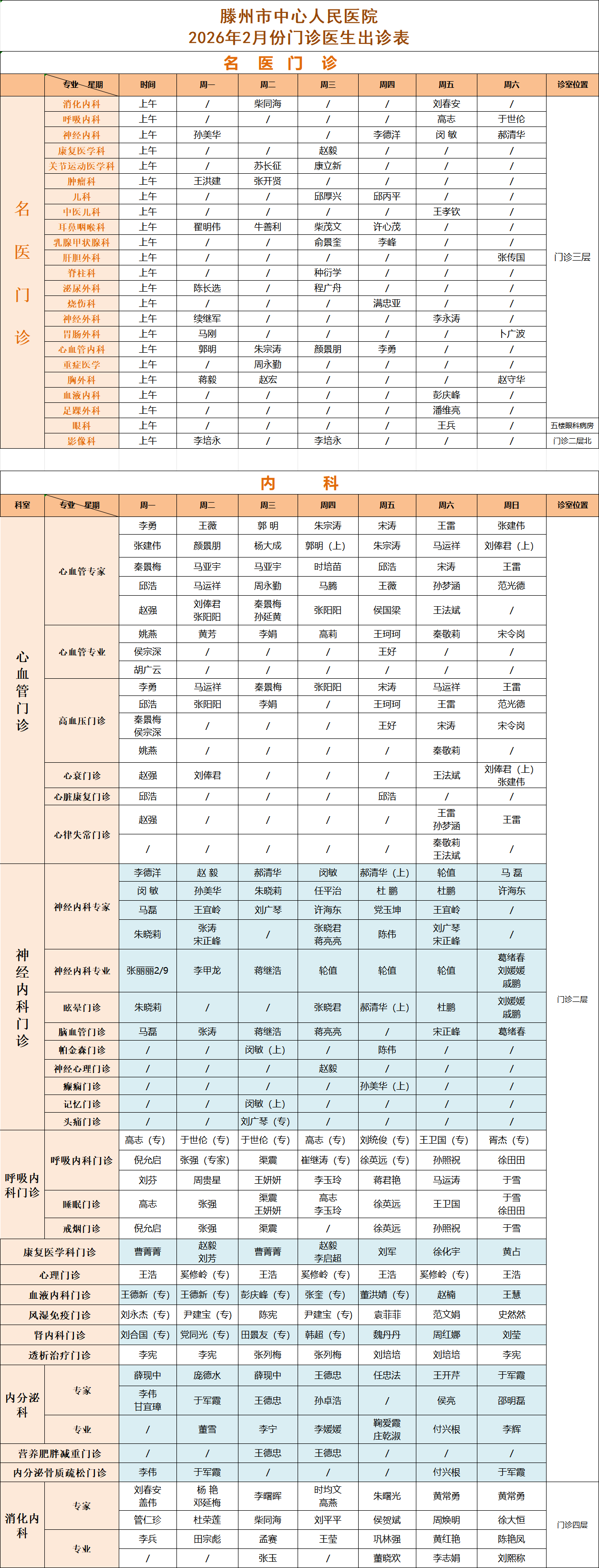 關(guān)注 | 滕州市中心人民醫(yī)院2月份專家、專業(yè)門診排班表