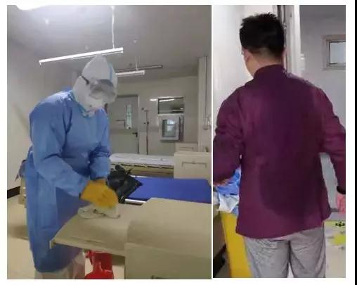 經(jīng)院感科對李冬冬進行病區(qū)消毒流程,方法、消毒液的配制,患者出院后的終末消毒流程與方法、防護用品的穿脫等系統(tǒng)全面培訓后,他毅然走向清潔消毒工作崗位。