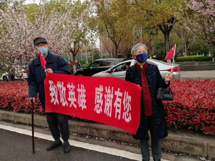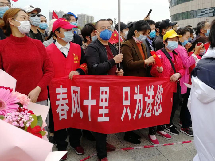 正在離開黃岡的山東醫(yī)療車隊(duì)所到之處受到當(dāng)?shù)匕傩諅兊膴A道歡迎,他們手中揮舞著紅旗對(duì)著車內(nèi)的英雄們喊道“感謝山東醫(yī)療隊(duì)!感謝山東人民!謝謝你們!”