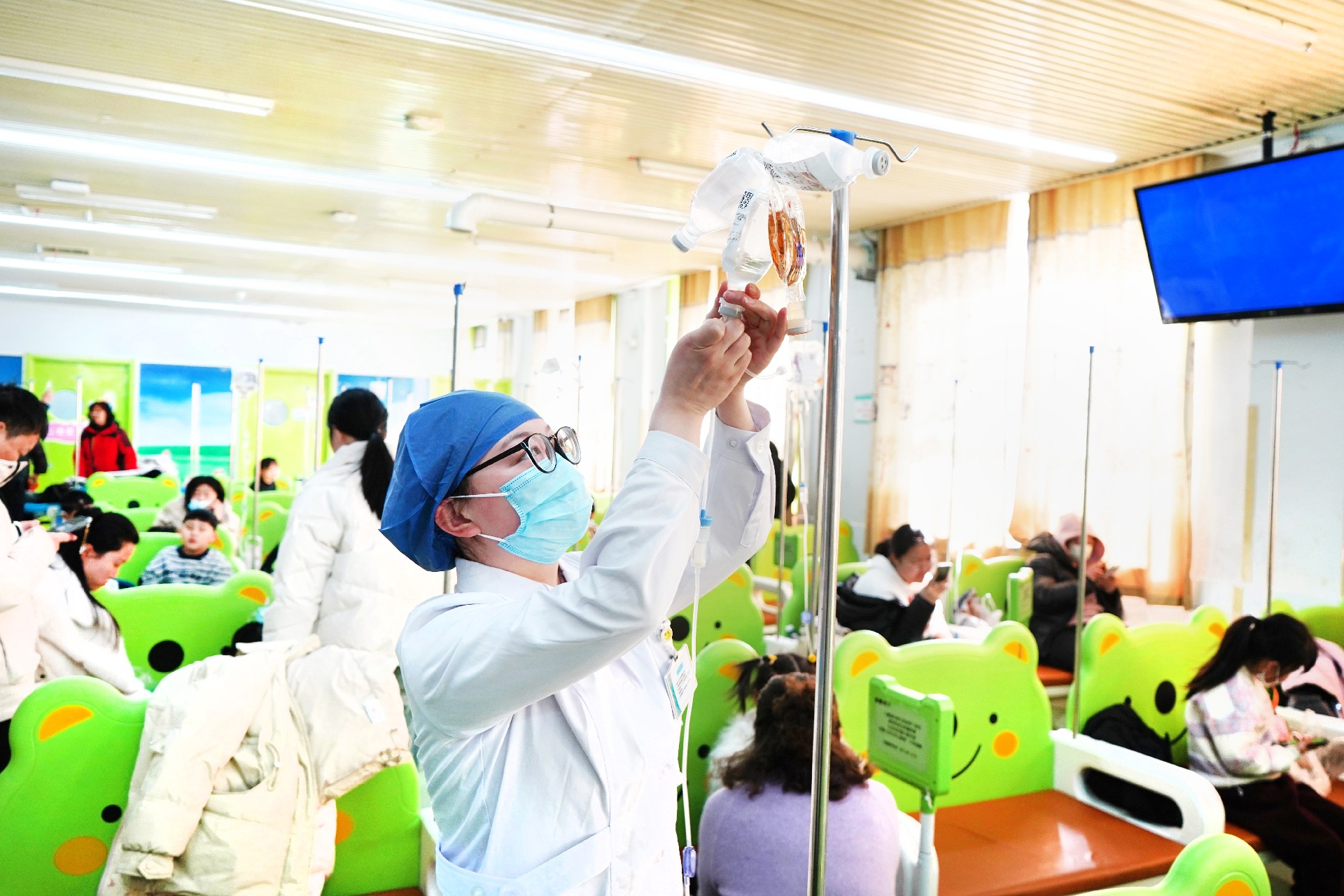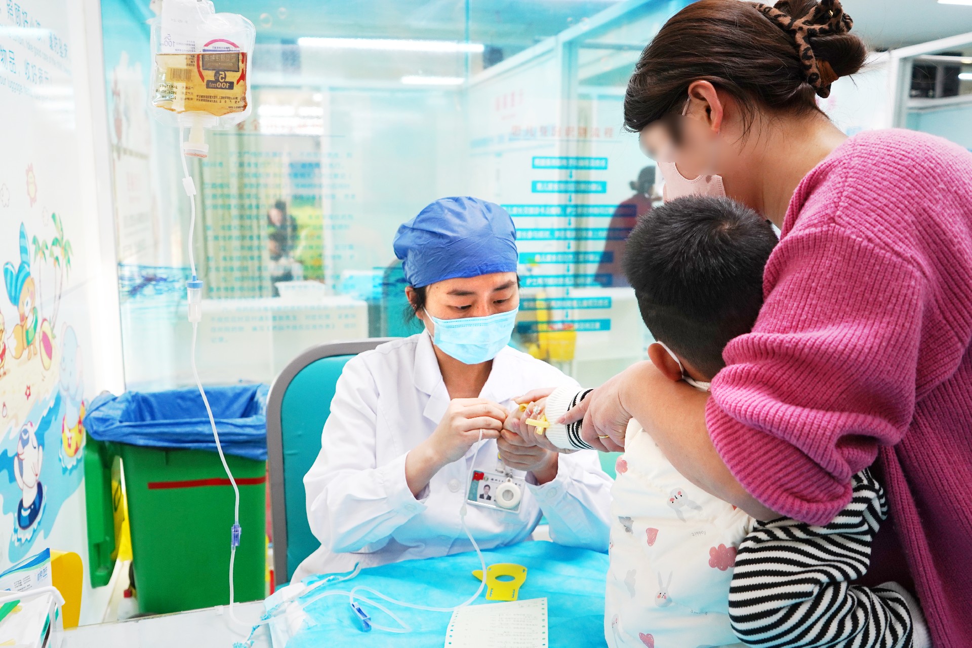 兒科輸液室里,醫(yī)護人員忙碌的身影從未停歇。輸液、換瓶、搶救、運送,他們腳步匆匆,卻忙而不亂。每一個細微關(guān)懷,每一抹溫暖笑意,都讓家長多了一份安心。