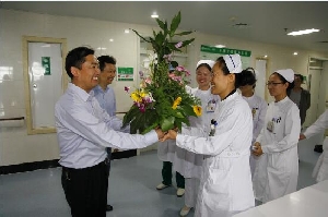 5月12日上午,楊瓊院長、朱恒科書記帶領(lǐng)領(lǐng)導(dǎo)班子成員和護(hù)理部負(fù)責(zé)同志,帶著一束束美麗的鮮花走進(jìn)臨床一線,向護(hù)士們送上最真摯的節(jié)日祝福,對她們的辛勤工作及無私奉獻(xiàn)