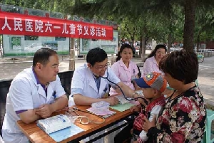 6月1日,市中心人民醫(yī)院醫(yī)生正為一兒童檢查身體。當(dāng)天,該院組織兒科醫(yī)務(wù)人員走上街頭,向過往市民宣傳健康知識(shí),并免費(fèi)為兒童診療。