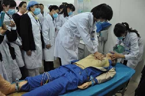 3月21日,我院120急救中心醫(yī)護人員正在對市交運公司員工進行培訓(xùn)。醫(yī)護人員先示范急救的基本過程,包括評估現(xiàn)場安全、啟動緊急醫(yī)療服務(wù)、脈搏檢查、胸外按壓、開放氣道、人