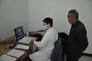 4月15日,市中心人民醫(yī)院黨委書記朱恒科帶領(lǐng)心內(nèi)科、神經(jīng)內(nèi)科、婦科、眼科、普外科、兒科及耳鼻咽喉科等20余名專家,攜帶彩超機、心電圖機、血糖儀等檢查設(shè)備及免費藥品,