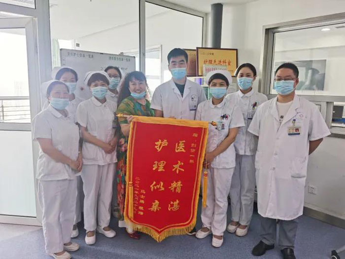 近日,住院患者家屬馬女士將一面“醫(yī)術(shù)精湛、護(hù)理似親”字樣的錦旗送至醫(yī)護(hù)人員手中,以表達(dá)對(duì)創(chuàng)傷一科全體醫(yī)護(hù)人員的感激之情。