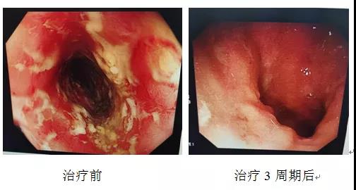 患者王老先生,因“間斷膿血便6年余、加重5-6天”入院。老先生潰瘍性結(jié)腸炎多年,每天排膿血便10余次,嚴(yán)重影響睡眠,生活質(zhì)量下降。入院后完善腸鏡檢查可見腸壁黏膜彌漫性多發(fā)潰瘍,潰瘍相互融合,血管網(wǎng)模糊,有大量膿性分泌物。蓋偉副主任醫(yī)師帶領(lǐng)醫(yī)護團隊根據(jù)患者病情制定診療方案,予生物制劑治療,1周期后患者癥狀明顯改善,患者康復(fù)出院。出院后,消化二科醫(yī)護人員定期隨訪,并指導(dǎo)患者進行后續(xù)治療,3周期治療后復(fù)查腸鏡潰瘍減輕,膿性分泌物明顯減少,黏膜恢復(fù)。醫(yī)護人員延續(xù)的醫(yī)療服務(wù),讓患者家屬非常感動。