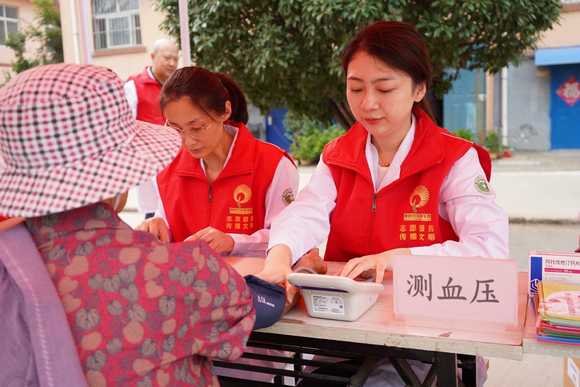 義診現(xiàn)場(chǎng),人頭攢動(dòng),氣氛熱烈。我院內(nèi)科、外科、兒科、眼科、耳鼻咽喉科、理療科、中醫(yī)科、皮膚科、藥學(xué)部的專(zhuān)家耐心細(xì)致地為居民提供科學(xué)、規(guī)范的診療指導(dǎo),認(rèn)真解答大家的疑惑,根據(jù)居民生活習(xí)慣,對(duì)常見(jiàn)的手部濕疹、關(guān)節(jié)炎、老年高血壓、冠心病等疾病進(jìn)行細(xì)致分析,并提供個(gè)性化的調(diào)理建議和預(yù)防保健知識(shí),指導(dǎo)居民培養(yǎng)健康的生活方式。同時(shí),新時(shí)代文明實(shí)踐“善國(guó)善醫(yī)”志愿服務(wù)隊(duì)隊(duì)員們?yōu)榍皝?lái)就診的居民提供免測(cè)量血壓、檢測(cè)血糖等健康檢查服務(wù)。