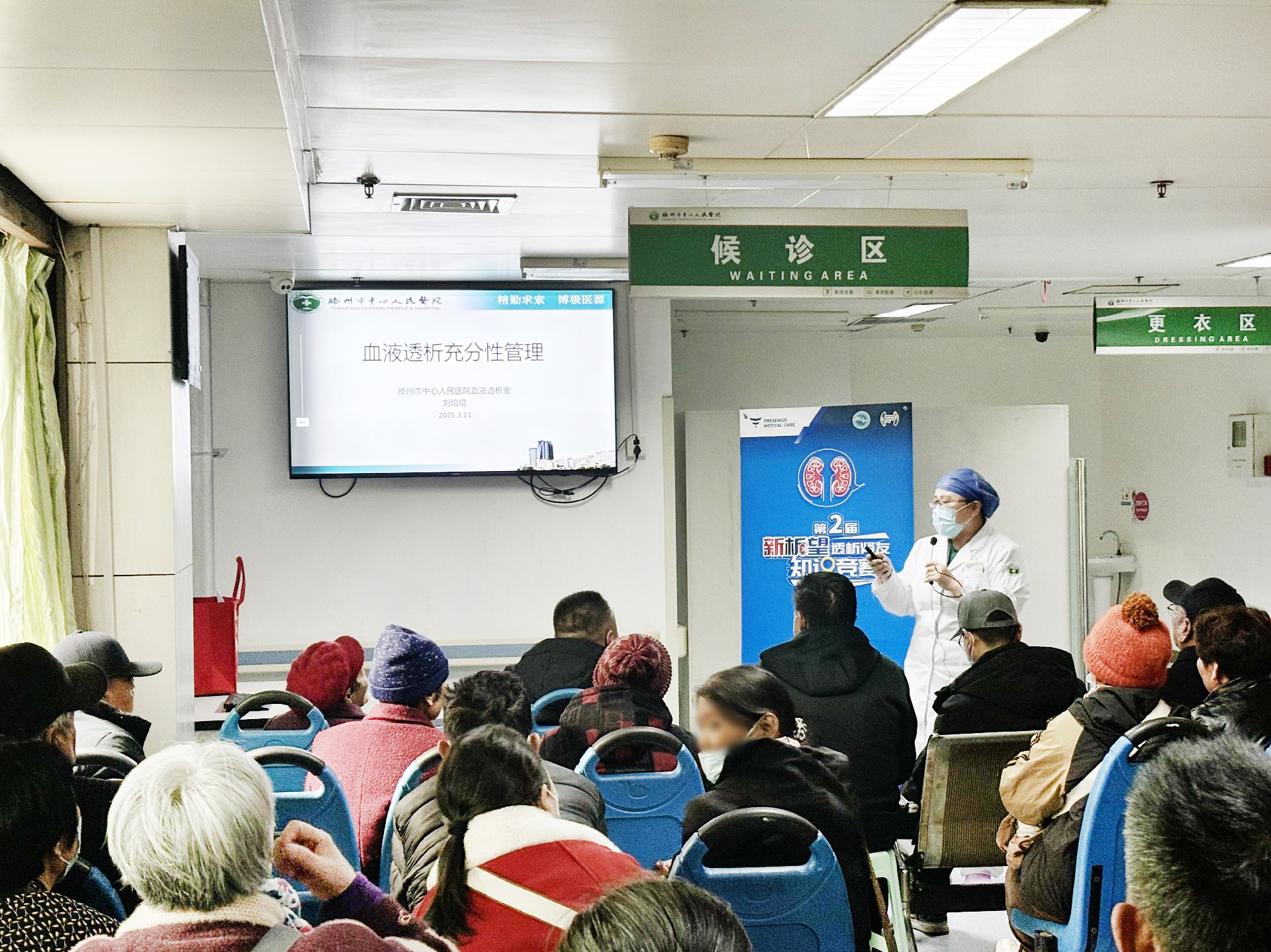 腎友會上,血液透析室劉琳琳護(hù)士長代表全體醫(yī)護(hù)人員向各位腎友及家屬表達(dá)了衷心的祝福,并介紹血液透析室的基本情況和活動的主題及流程。
