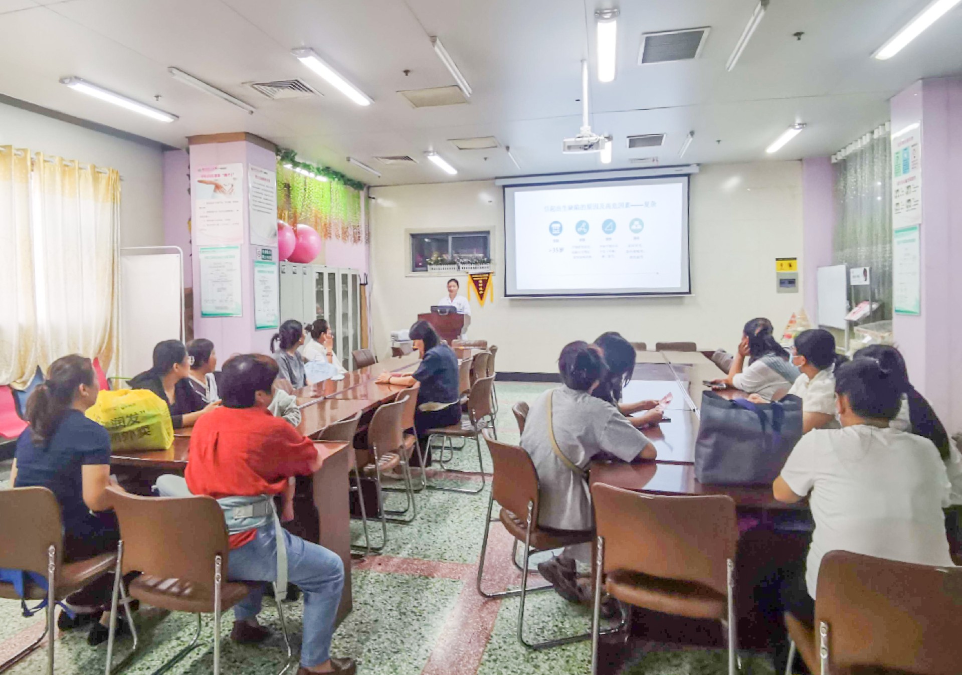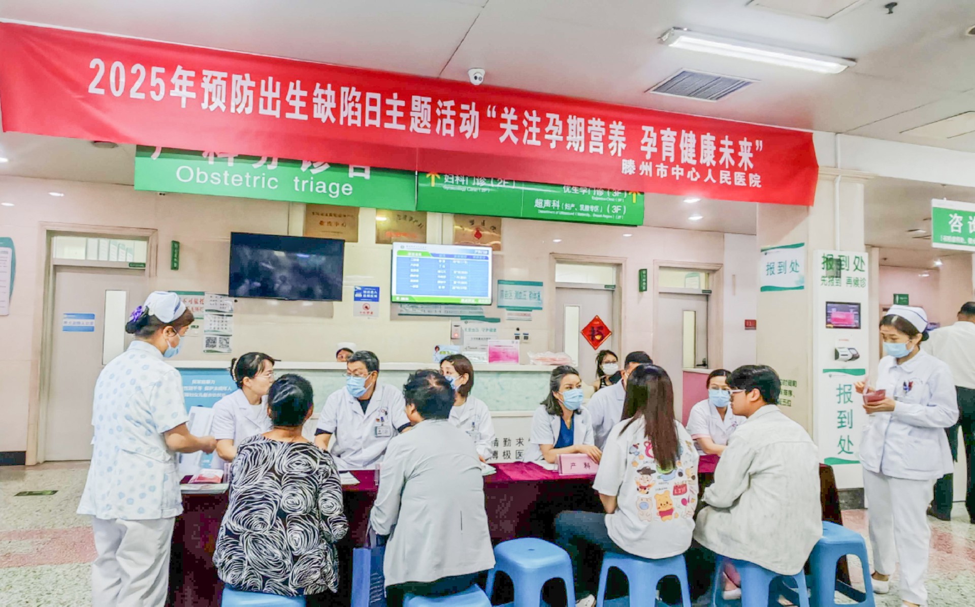 活動(dòng)首先在產(chǎn)科門診孕婦課堂舉行了《預(yù)防出生缺陷,寶寶未來(lái)無(wú)“陷”》科普講座。次日,在門診大廳產(chǎn)科區(qū)域舉辦多學(xué)科專家咨詢、健康宣教義診活動(dòng)。