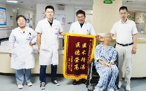 7月7日,一位蛛網(wǎng)膜下腔出血康復(fù)出院的患者,將一面寫有“醫(yī)者仁心、妙手回春”的錦旗送到神經(jīng)內(nèi)四科病房。患者,男,48歲,因急性劇烈頭痛就診外院,診斷為“蛛網(wǎng)膜下腔出血”,為求進(jìn)一步治療急來我院,急診經(jīng)綠色通道收入病房??紤]到85%的自發(fā)性蛛網(wǎng)膜下腔出血由顱內(nèi)動脈瘤破裂所致,隨時可能再次破裂出血,危及生命,
