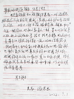 尊敬的劉斌大夫、張秀清、郭士玲護(hù)士:你們好!我是貴院乳腺甲狀腺外科26床患者的家屬,非常感謝你們和科室的大夫、護(hù)士們在我母親生病期間,對老人無微不至的照顧。在此,對你們深表謝意!一次常規(guī)健康查體,細(xì)心的劉斌大夫查出問題并勸說母親進(jìn)行手術(shù)。我母親十幾年前做過一次大手術(shù),因此對于這次手術(shù),老人家有些信心不