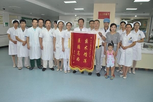 8月5日,28歲的魯化職工趙本華在家人的陪同下,將一面繡有 “醫(yī)術精湛 醫(yī)德高尚”的錦旗送到市中心人民醫(yī)院心內二科,趙本華握著郭明主任的雙手,熱淚盈眶,激