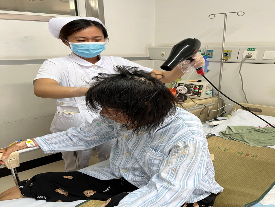 李開復(fù)先生說過一句話“從思考中確定自我價(jià)值”。我們需要做護(hù)理的有心人,用心去學(xué)習(xí)、去思考、去實(shí)踐,更好地體現(xiàn)自身的價(jià)值。當(dāng)患者正在輸液時(shí),我會(huì)主動(dòng)幫助倒水,把水杯遞過去;幫患者舉吊瓶去廁所;幫助患者梳頭等。