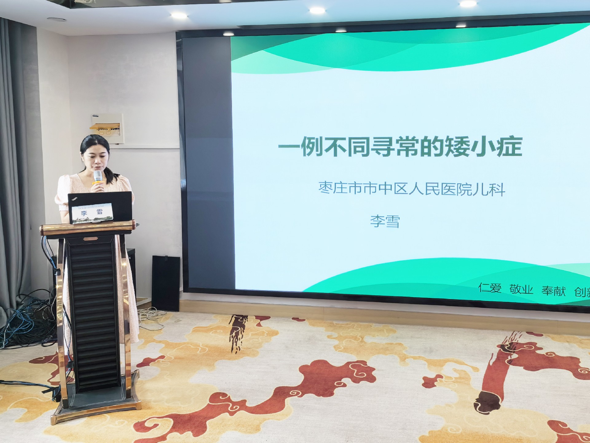 學(xué)術(shù)會(huì)議上,山東大學(xué)齊魯醫(yī)院劉華衛(wèi)教授就矮身材兒童診治規(guī)范進(jìn)行詳細(xì)講解;山東大學(xué)齊魯兒童醫(yī)院趙冬梅教授就加強(qiáng)兒童生長發(fā)育??埔?guī)范化建設(shè)助力兒童健康高質(zhì)量發(fā)展進(jìn)行展望,并介紹了自己的經(jīng)驗(yàn);邱丙平主任對兒童特發(fā)性矮身材診斷與治療中國專家的共識(shí)進(jìn)行解讀;棗莊市婦幼保健院竇愛燕主任對金賽增治療ISS兒童擴(kuò)展期療效和安全性數(shù)據(jù)作了分享;我院新生兒一科王蘭副護(hù)士長對GH/GnRH激發(fā)試驗(yàn)流程進(jìn)行了詳細(xì)的說明;棗莊市市中區(qū)人民醫(yī)院兒科李雪醫(yī)生分享了一例不同尋常的矮小癥。