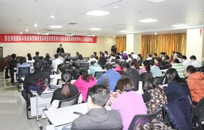 根據(jù)《中共棗莊市委組織部中共棗莊市委宣傳部印發(fā)〈關(guān)于在全市廣大知識分子中深入開展“弘揚(yáng)愛國奮斗精神、建功立業(yè)新時代”活動實(shí)施方案〉的通知》精神,由棗莊市委講師團(tuán)牽頭成立的愛國奮斗先進(jìn)典型巡回宣講團(tuán),于2018年12月2日蒞臨我院開展巡回宣講活動。