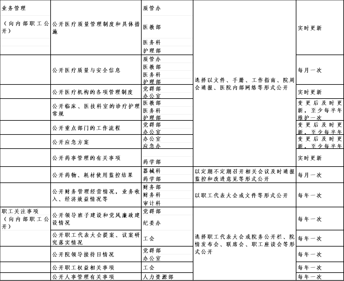 2. 結(jié)合醫(yī)院的發(fā)展戰(zhàn)略和工作重點(diǎn),研究確定院務(wù)公開(kāi)的內(nèi)容、形式和范圍,保證公開(kāi)的信息全面、準(zhǔn)確、及時(shí)。