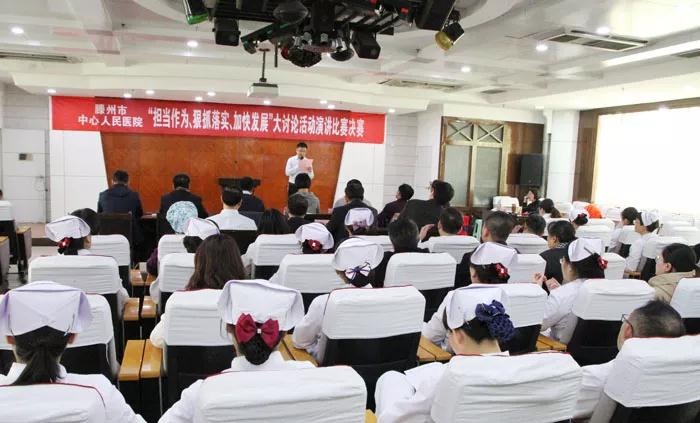 為深入貫徹落實(shí)黨的十九大和全省、兩級(jí)市委“擔(dān)當(dāng)作為、狠抓落實(shí)”工作動(dòng)員大會(huì)精神,進(jìn)一步深化“擔(dān)當(dāng)作為、狠抓落實(shí)、加快發(fā)展”大討論活動(dòng),凝聚醫(yī)院創(chuàng)新發(fā)展的活力,加快新舊動(dòng)能轉(zhuǎn)換,充分調(diào)動(dòng)干部職工的積極性,推動(dòng)滕州高質(zhì)量發(fā)展。院黨委聯(lián)合院工會(huì)舉辦“擔(dān)當(dāng)作為、狠抓落實(shí)、加快發(fā)展”大討論演講比賽。
