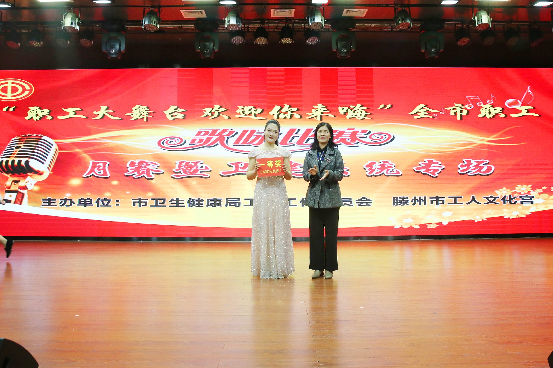 我院風(fēng)濕免疫科王莉通過(guò)層層選拔,先后獲得第一次月賽暨衛(wèi)健系統(tǒng)專(zhuān)場(chǎng)一等獎(jiǎng),季賽暨文藝活動(dòng)進(jìn)社區(qū)二等獎(jiǎng),成功闖入決賽,最終在總決賽中脫穎而出,以?xún)?yōu)美的歌聲,豐富的舞臺(tái)經(jīng)驗(yàn),榮獲優(yōu)秀獎(jiǎng)。
