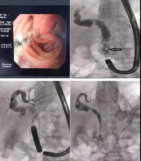 患者81歲高齡女性,既往胃大部切除畢Ⅱ式吻合術(shù)后30余年,因發(fā)熱、腹痛入院,診斷為膽總管結(jié)石、急性梗阻性化膿性膽管炎。患者存在高齡、感染性休克等情況,病情復雜危重,蓋偉主任立即爭分奪秒組織科內(nèi)專家仔細分析討論病情,決定首選ERCP取石術(shù)。