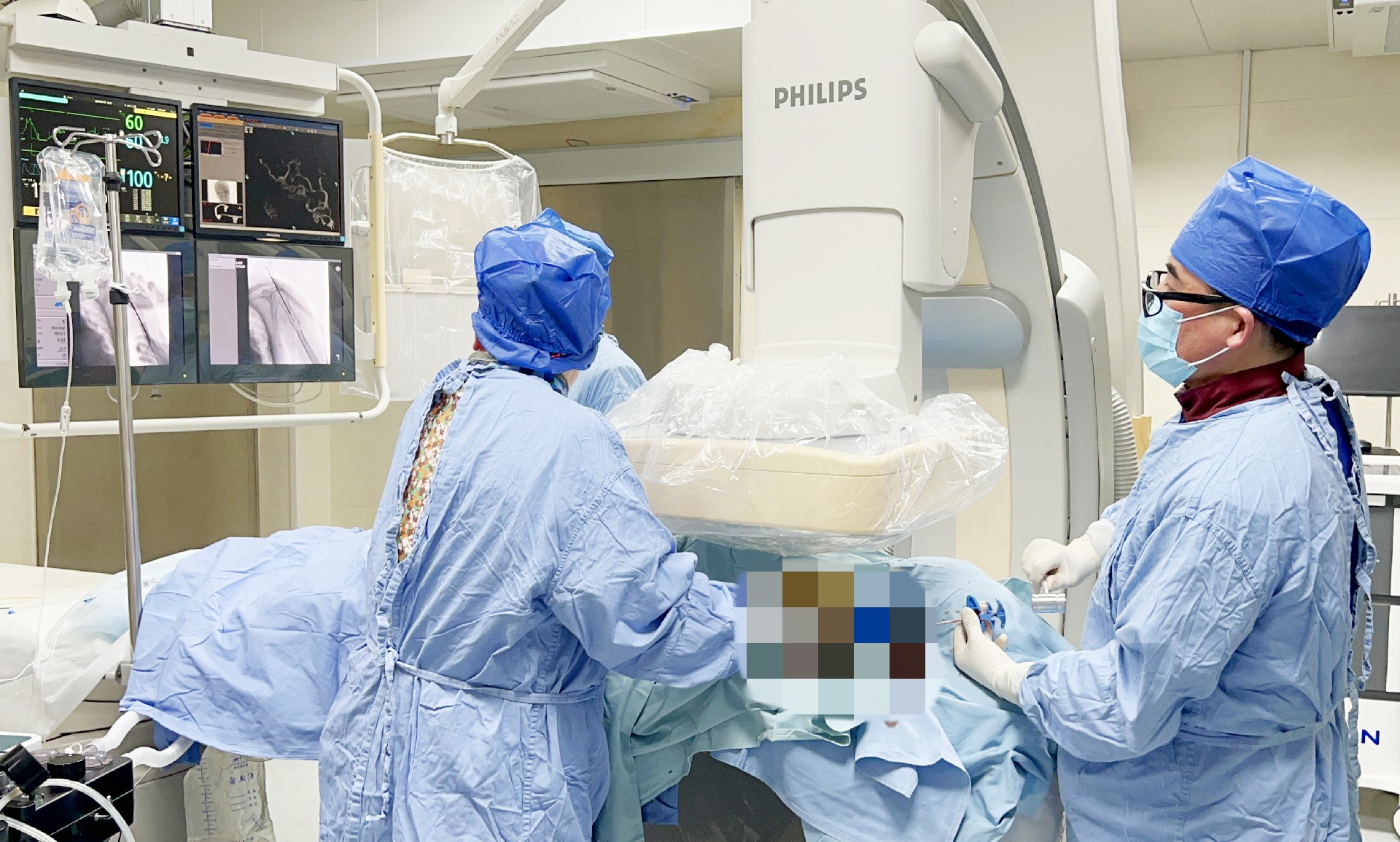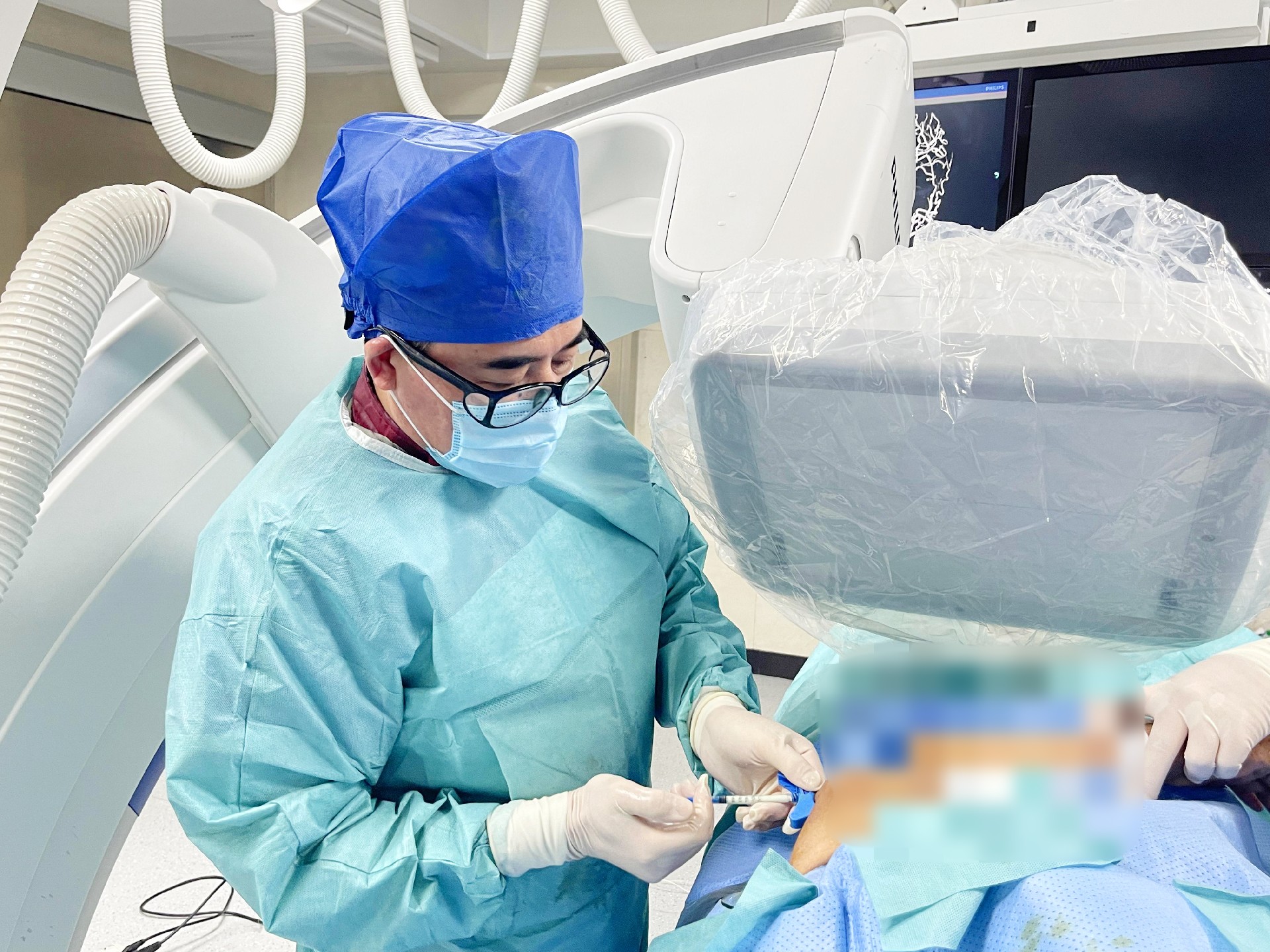 經(jīng)MDT討論,決定采用新的微創(chuàng)技術(shù)進(jìn)行治療。張開賢主任帶領(lǐng)團(tuán)隊(duì),在DSA引導(dǎo)下,先對(duì)病變區(qū)域進(jìn)行微波消融,然后置入2根克氏針,最后再注射15ml骨水泥,術(shù)后第二天疼痛消失?,F(xiàn)患者右上肢活動(dòng)正常,能從事一般家務(wù)勞動(dòng)。