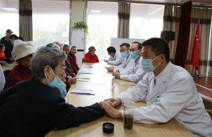 當(dāng)日上午,由心內(nèi)科、呼吸內(nèi)科、消化內(nèi)科、內(nèi)分泌科、神經(jīng)內(nèi)科、骨外科、中醫(yī)科、護理部等10多名專家組成的義診隊伍來到中央城孝潤養(yǎng)老服務(wù)中心,為老人們送去義診服務(wù)。