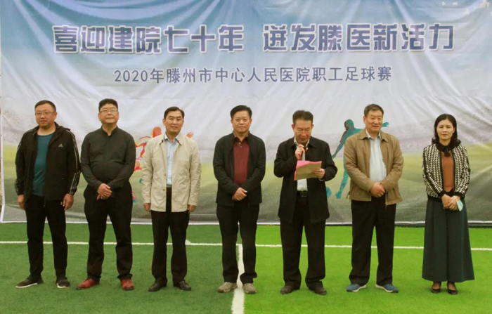 為慶祝建院70周年,提升職工健康水平,豐富職工的業(yè)余文化生活,增強(qiáng)職工的凝聚力,營(yíng)造和諧向上的醫(yī)院文化氛圍,10月11日上午,我院第六屆職工足球比賽在市奧體中心足球場(chǎng)隆重開(kāi)幕。滕州市人大副主任李廣憲;滕州市教育和體育局黨組成員、市體育發(fā)展服務(wù)中心黨組書(shū)記主任王介貞;滕州市融媒體中心總主編李衛(wèi)東;滕州市衛(wèi)健局黨組成員、機(jī)關(guān)黨委書(shū)記顏紅菊;滕州市財(cái)稅管理服務(wù)中心主任高鵬;我院院長(zhǎng)楊瓊、黨委書(shū)記朱恒科等領(lǐng)導(dǎo)及辦公室、工會(huì)、共青團(tuán)等科室負(fù)責(zé)人、參賽運(yùn)動(dòng)員代表出席開(kāi)幕式。開(kāi)幕式由黨委書(shū)記朱恒科主持。