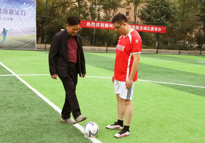 院長(zhǎng)楊瓊致開(kāi)幕辭,并宣布滕州市中心人民醫(yī)院成立70周年暨第六屆職工足球賽正式開(kāi)始!他表示,足球是一項(xiàng)世界性的體育運(yùn)動(dòng),也是最具影響力的體育活動(dòng),深受大家的喜愛(ài)。參賽隊(duì)員一定要注意比賽中的人身安全,文明參賽,規(guī)范參賽,發(fā)揚(yáng)更高、更快、更強(qiáng)的奧運(yùn)精神,賽出水平,賽出風(fēng)格,積極展現(xiàn)我院職工的團(tuán)隊(duì)精神和健康向上的精神風(fēng)貌,用優(yōu)異的比賽共賀建醫(yī)院70周年華誕。同時(shí),也希望醫(yī)院工會(huì)要繼續(xù)發(fā)揮職工之家的作用,做好堅(jiān)強(qiáng)的后勤保障;全體裁判員要嚴(yán)守規(guī)程、公正裁判;全體工作人員忠于職守,樹(shù)立安全意識(shí)、服務(wù)意識(shí)、規(guī)則意識(shí),共同為足球比賽創(chuàng)造良好的氛圍,確保比賽的順利進(jìn)行。