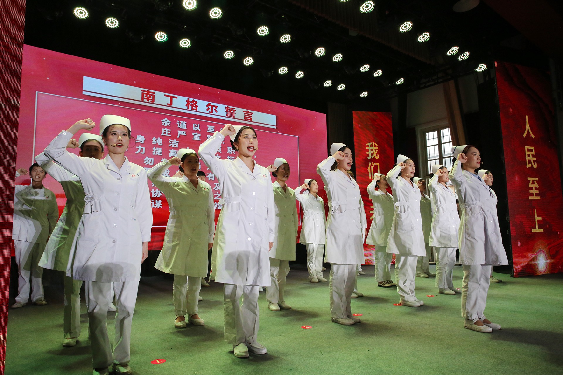 期間,進行了精彩的文藝表演。情景表演《希望你被這個世界愛著》、朗誦《天使之光》、情景歌舞《燦爛的五月》等節(jié)目,贏得了全場陣陣掌聲。大會在歌曲《中國護士之歌》《我們的新時代》合唱中落下帷幕。